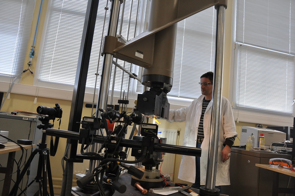 The UTS machine is an electromechanical machine which enables mechanical testing under monotonic tension and compression loading with a loading capacity of 200kN (the machine has two load cells of 1kN and 200 kN). The maximal linear stroke is 800 mm. The maximal loading frequency is 10 mm/min.